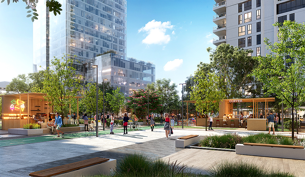 הפרויקט יכלול חניון תת-קרקעי עצום, ובין חלקיו השונים ייבנה מדרחוב אשר יהווה ציר ירוק, פתוח ונגיש המחבר בין שלל שימושי המתחם.